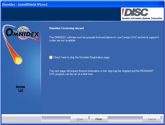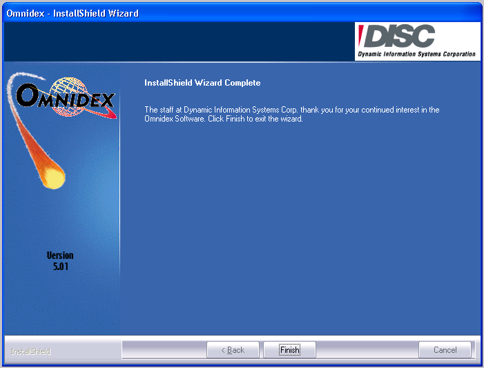 Click Finish to complete the Omnidex Installation Wizard and automatically launch the Omnidex Licensing Wizard.