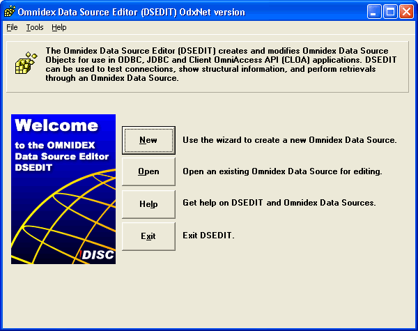 DSEDIT, the Omnidex Data Source Editor is a Windows utility that creates and modifies Omnidex data sources.